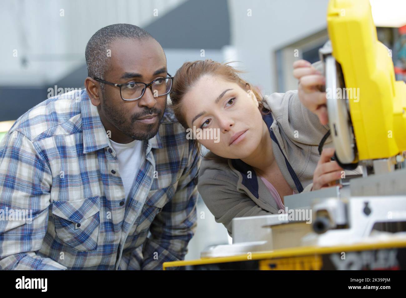 carpentry apprentice working under supervision Stock Photo - Alamy