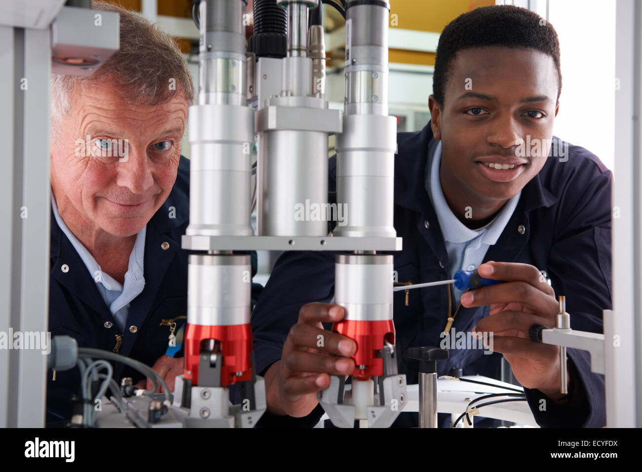 senior engineer instructing apprentice at machine bench Stock Photo - Alamy