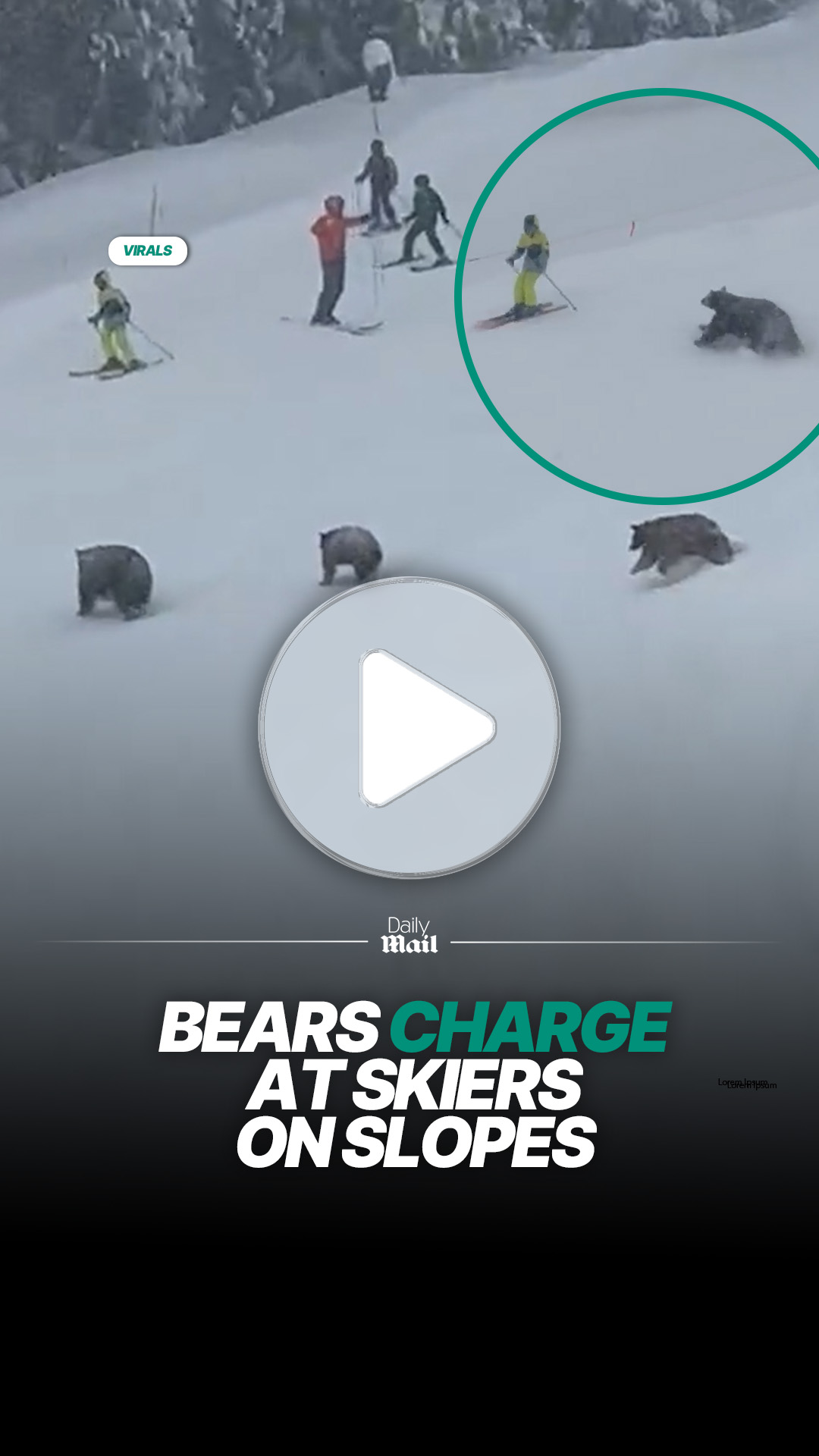 Bears approach skiers on mountain slope