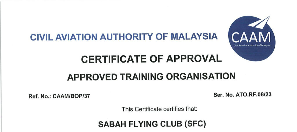 Sabah Flying Club’s Certificate of Approval as Approved Training ...