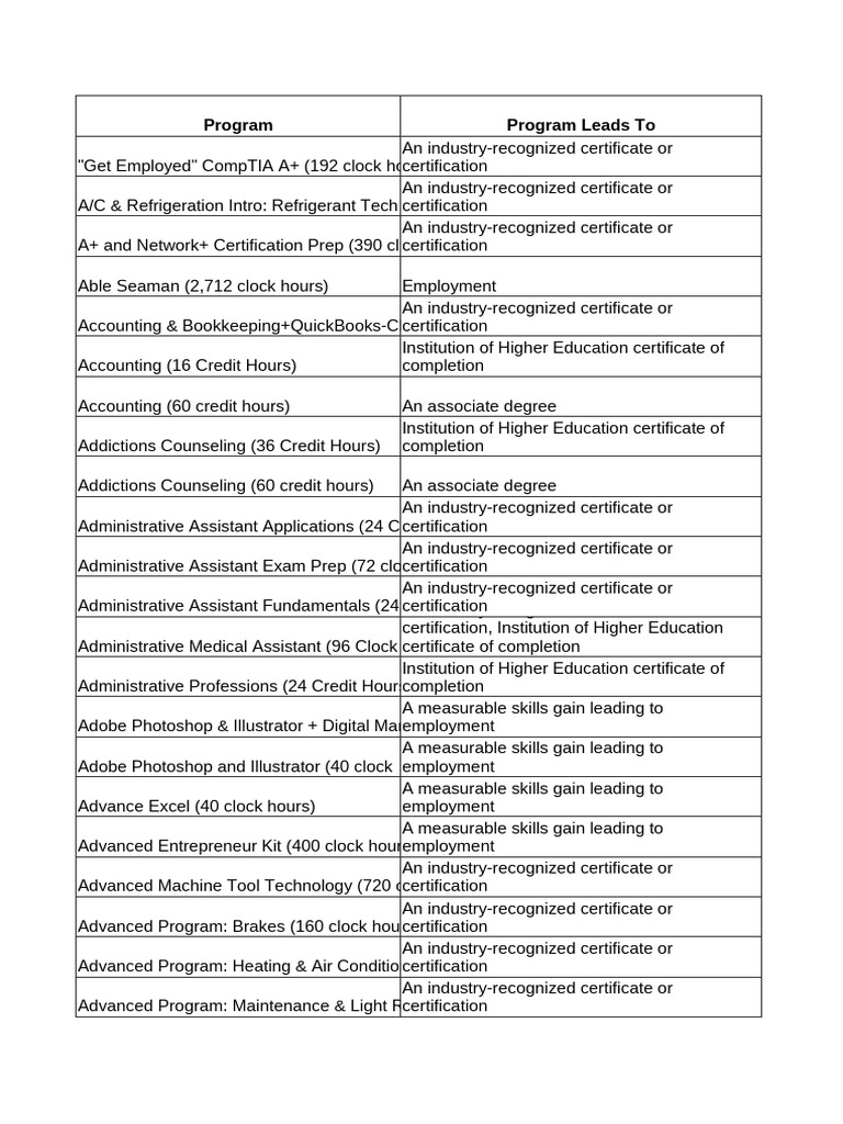 Maryland Eligible Training Provider List Approved Programs | PDF ...