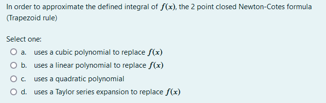 Solved In order to approximate the defined integral of f(x), | Chegg.com