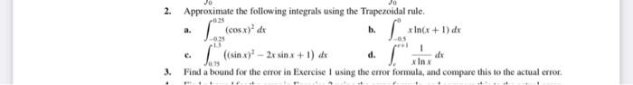 Solved 1. Approximate the following integrals using the | Chegg.com