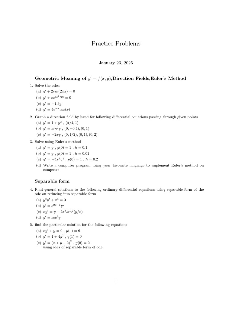 Differential Equations Practice Problems | PDF