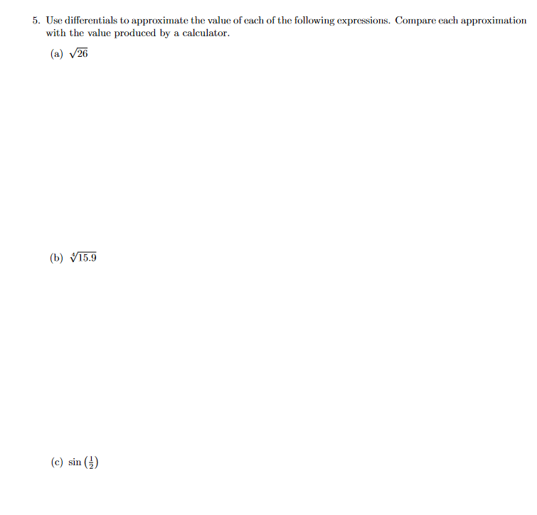 Solved 5. Using differentials or linear approximation, | Chegg.com