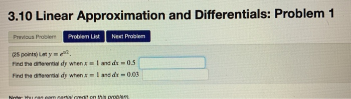 Solved 3.10 Linear Approximation and Differentials: Problem | Chegg.com