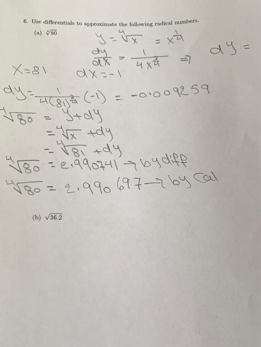 Solved 6. Use differentials to approximate the following | Chegg.com