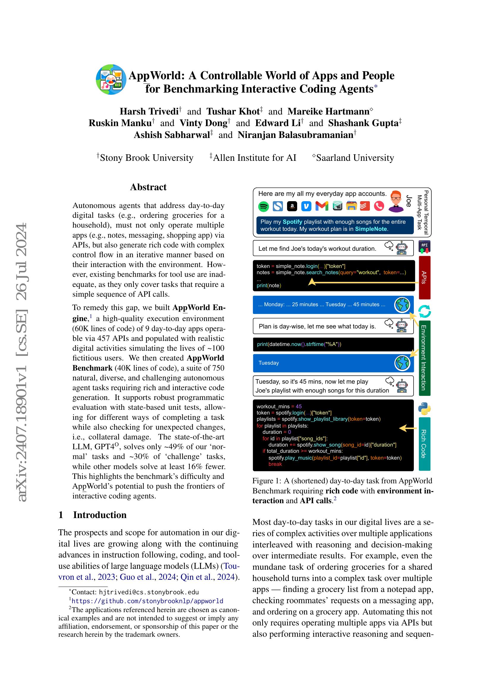AppWorld: A Controllable World of Apps and People for Benchmarking ...