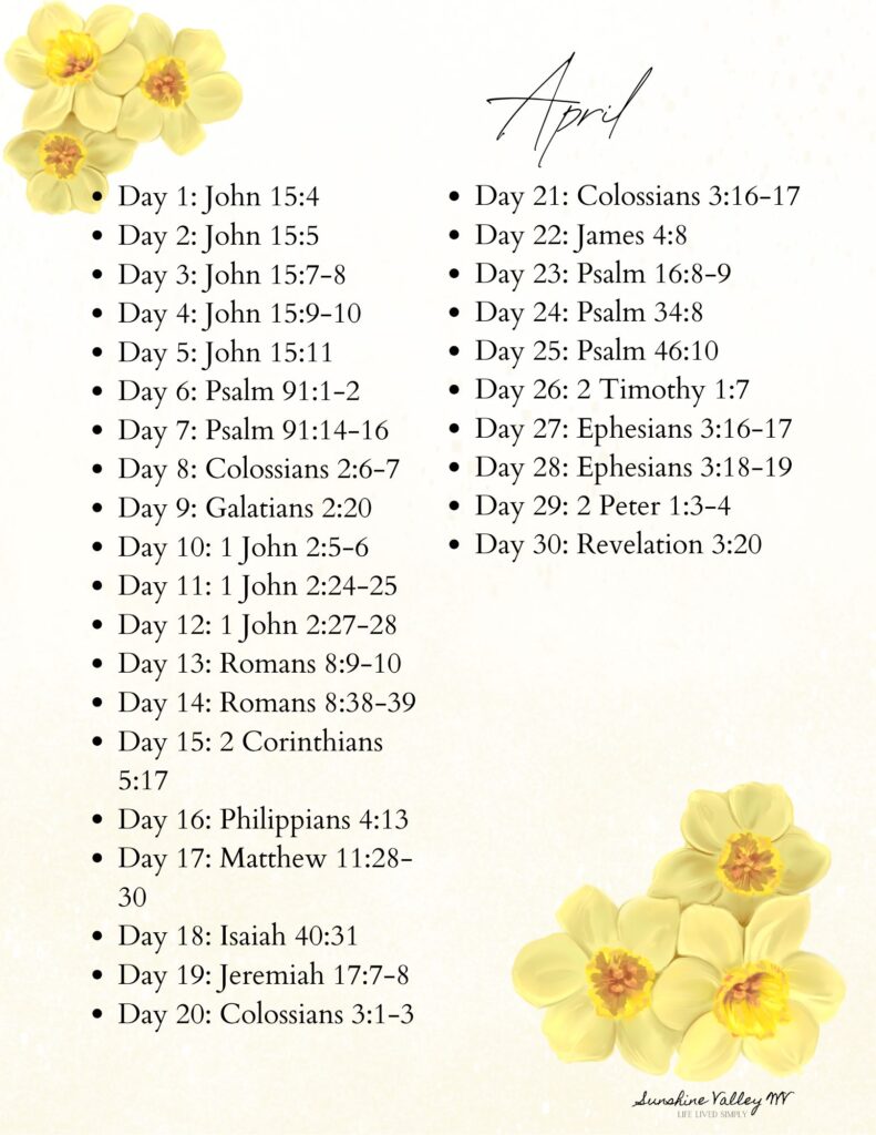 April Scripture Writing Plan: 30 Days of Abiding in Christ - Sunshine ...