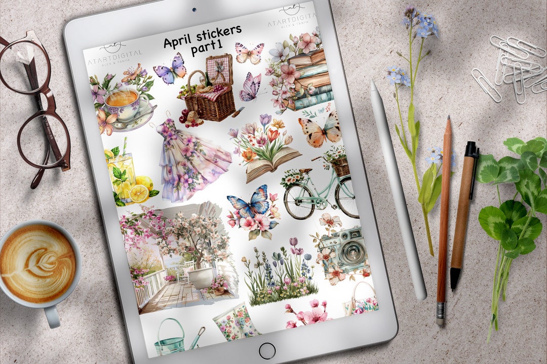April Digital Stickers 500 April Digital Sticker Set | Etsy