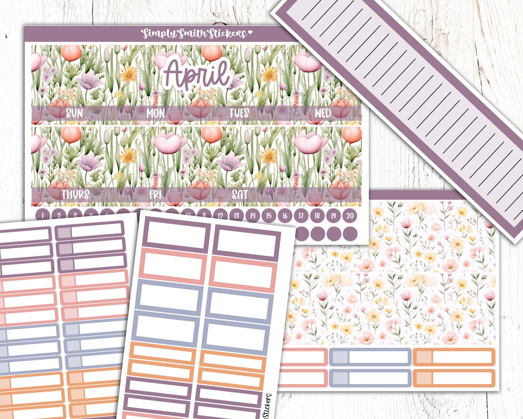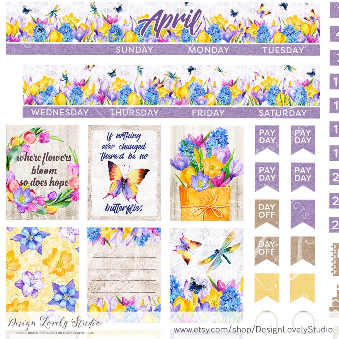 APRIL PRINTABLE MONTHLY Sticker, Blosoom Planner Sticker Kit, April ...