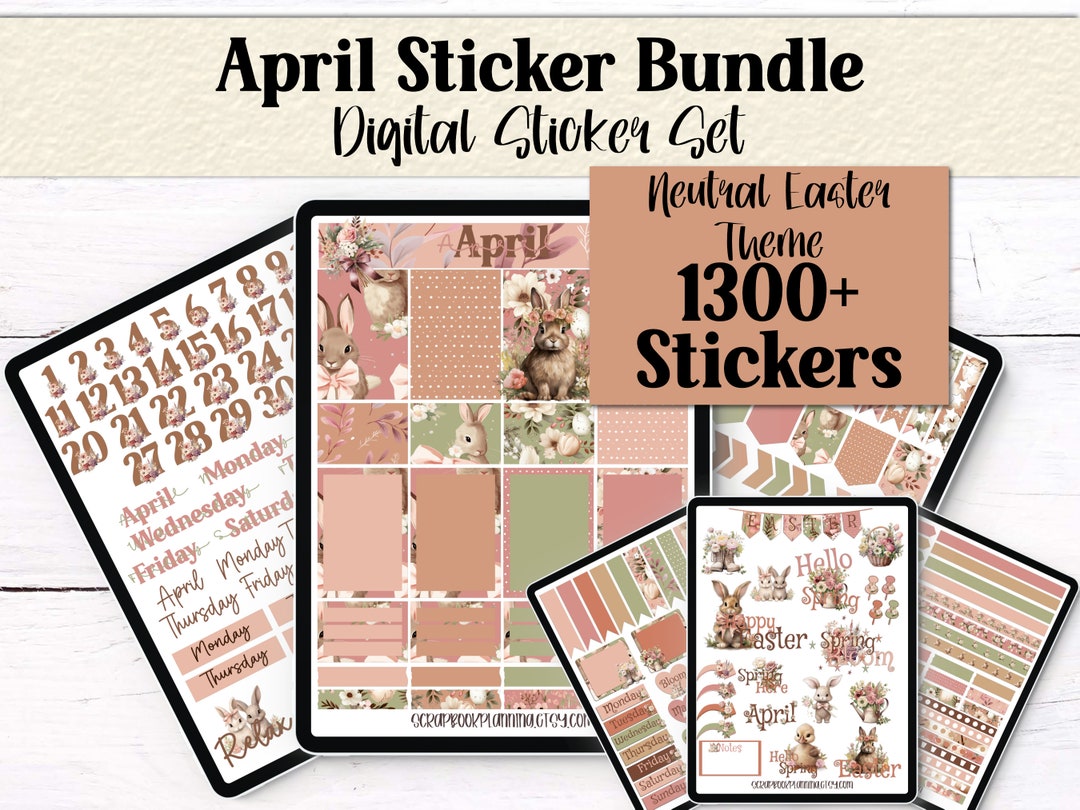April Digital Stickers Neutral Easter Theme Easter Stickers Functional ...