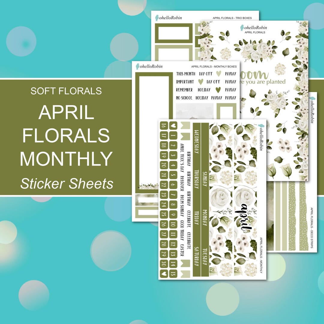 APRIL FLORALS MONTHLY Sticker Sheets | Soft Florals Collection ...