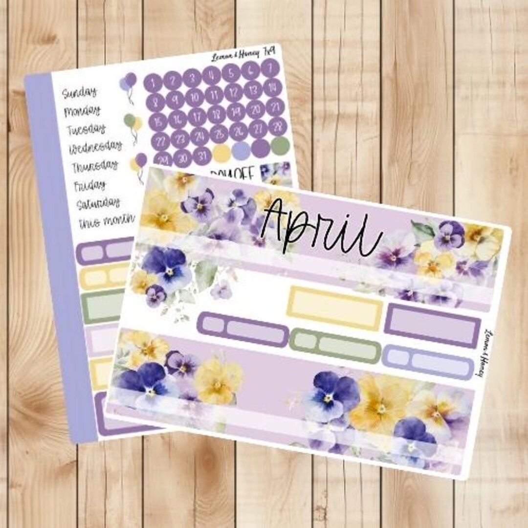 April Monthly View Sticker Kit // Kiss Cut Planner Stickers // Two ...