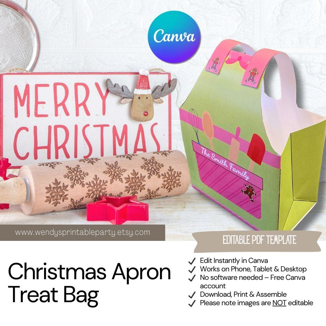 Editable - Vintage Pink and Green Apron Treat Bag, Christmas Apron ...
