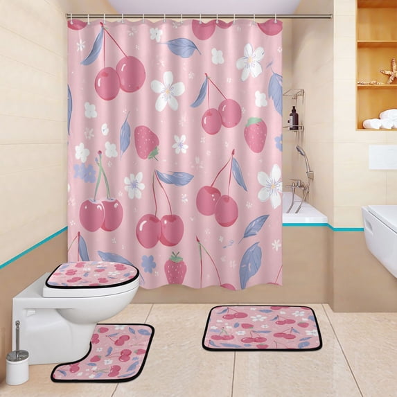BZSMCE 4PCS Shower Curtain Set Bathroom Decorative Set-Strawberry ...