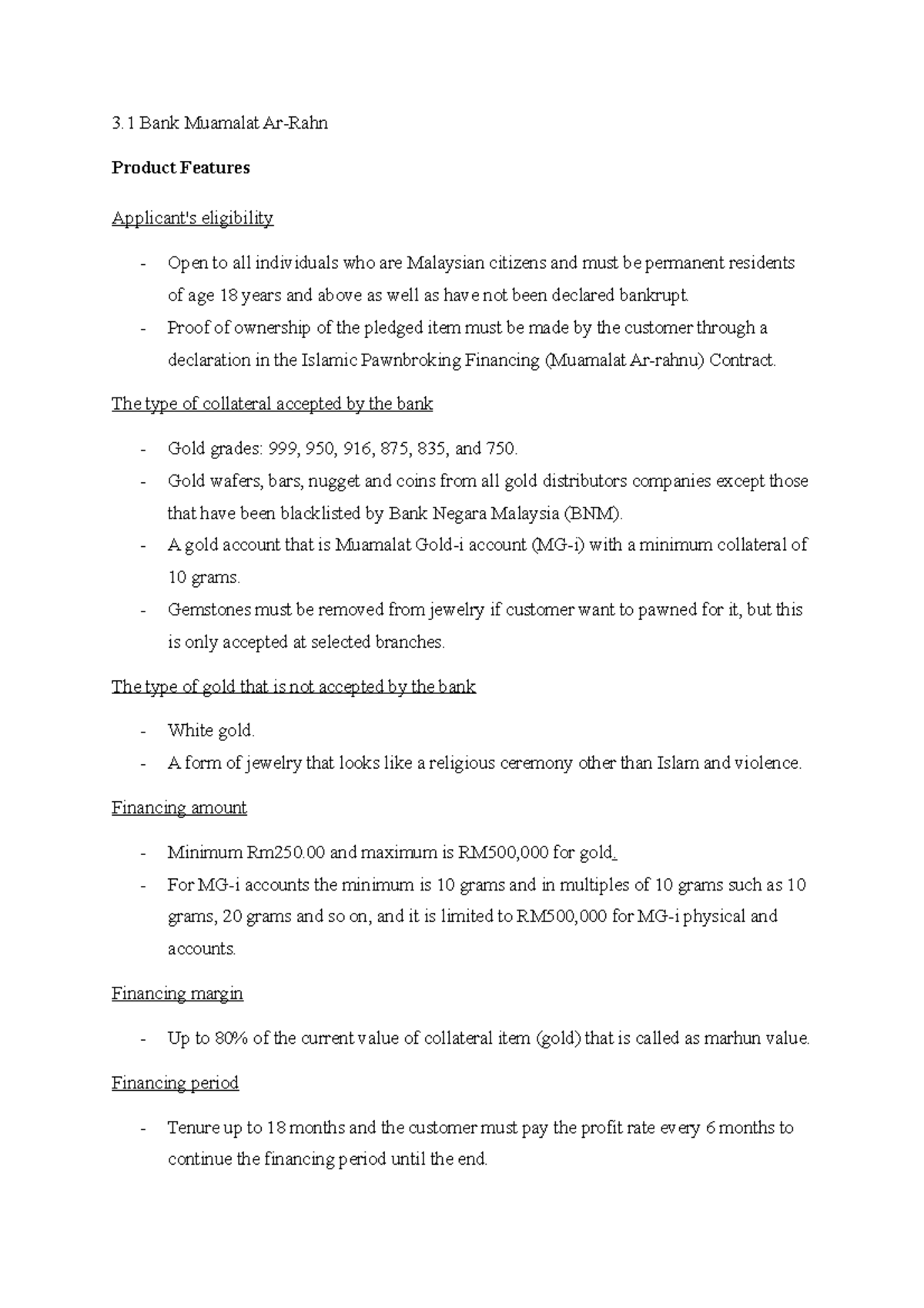 3.0 Product Features and Modus Operandi - 3 Bank Muamalat Ar-Rahn ...