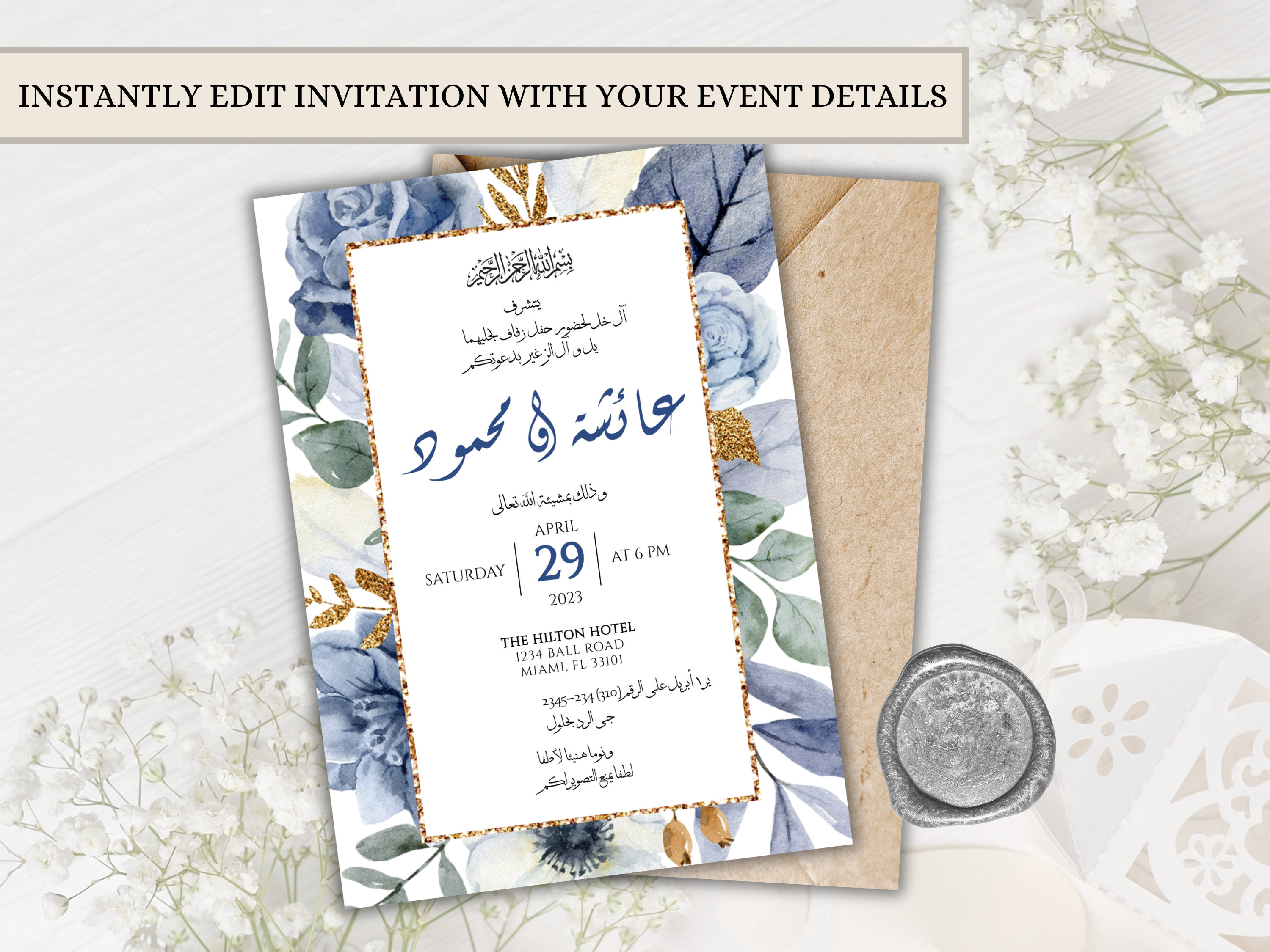 Arabic Wedding Invitation. Digital Arabic Wedding Invitation. Printable ...