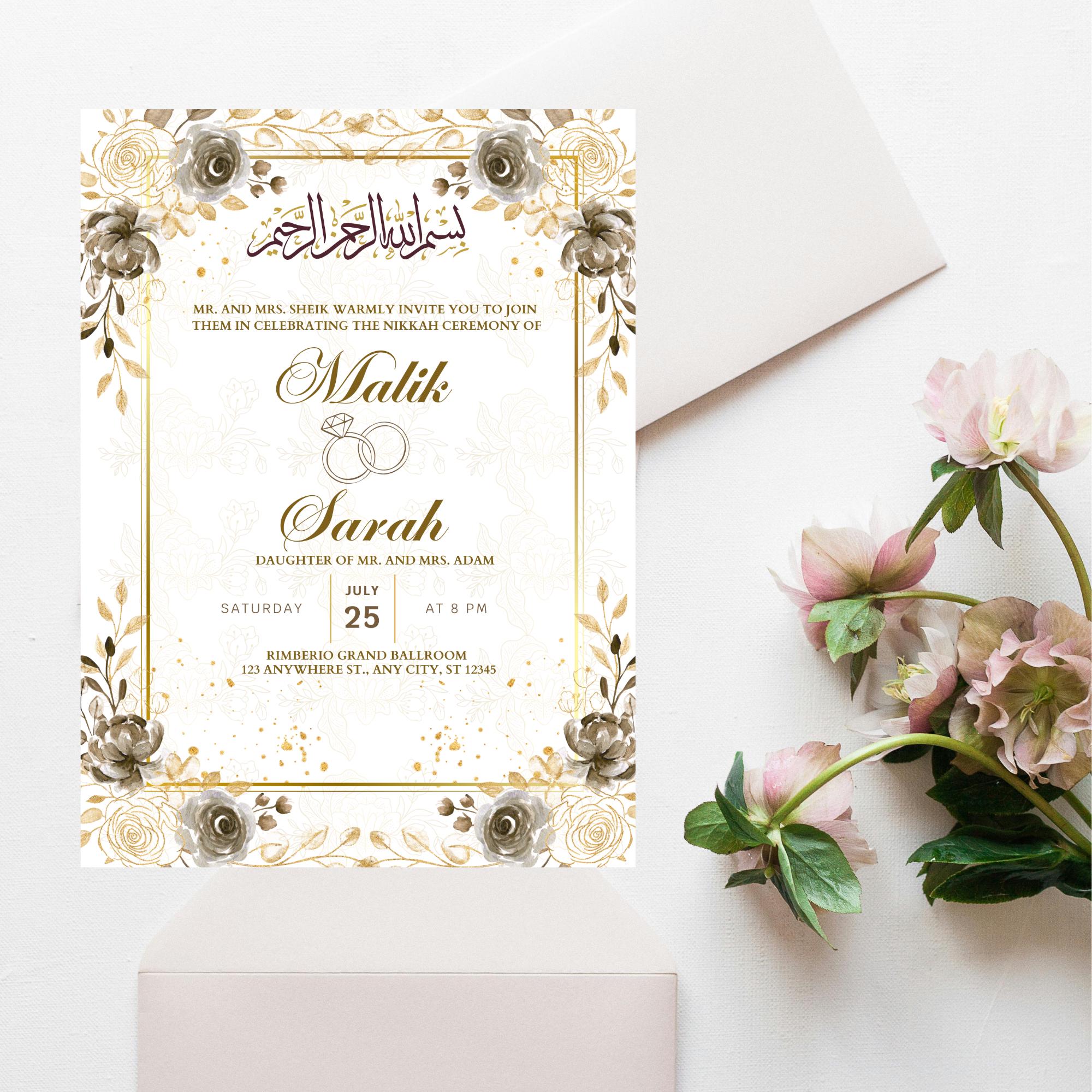 Elegant Muslim Wedding Invitations | Custom Nikah Cards | Digital ...