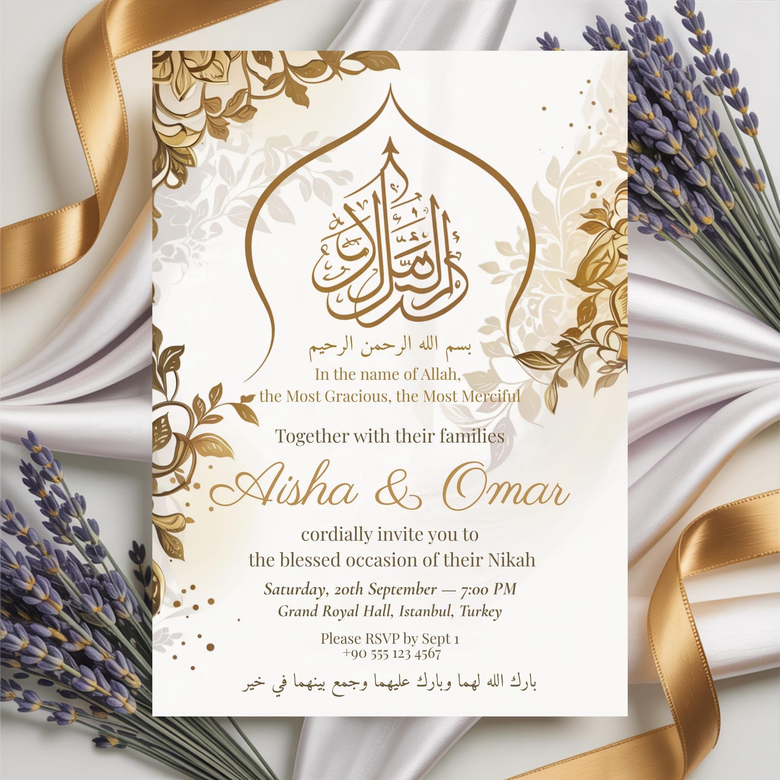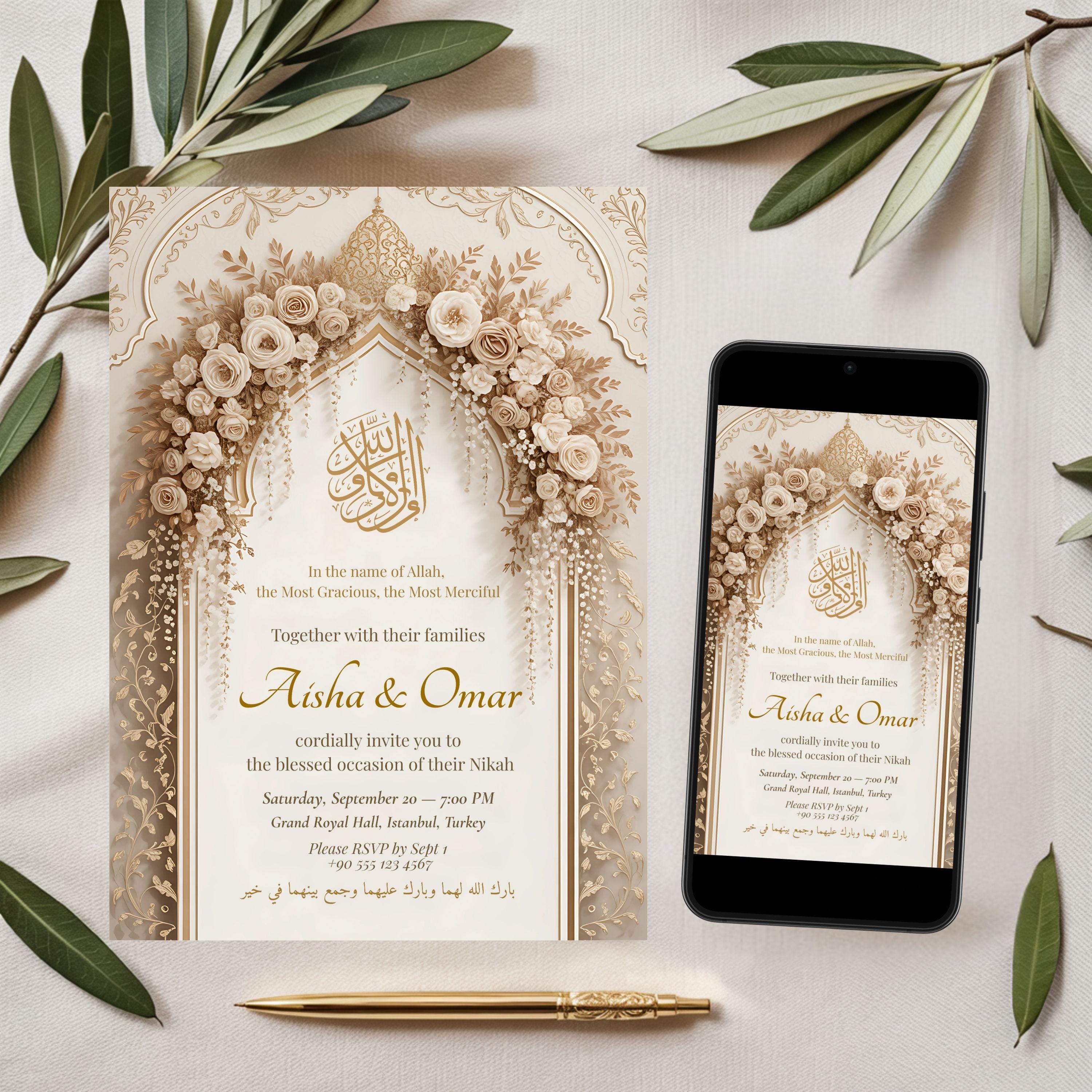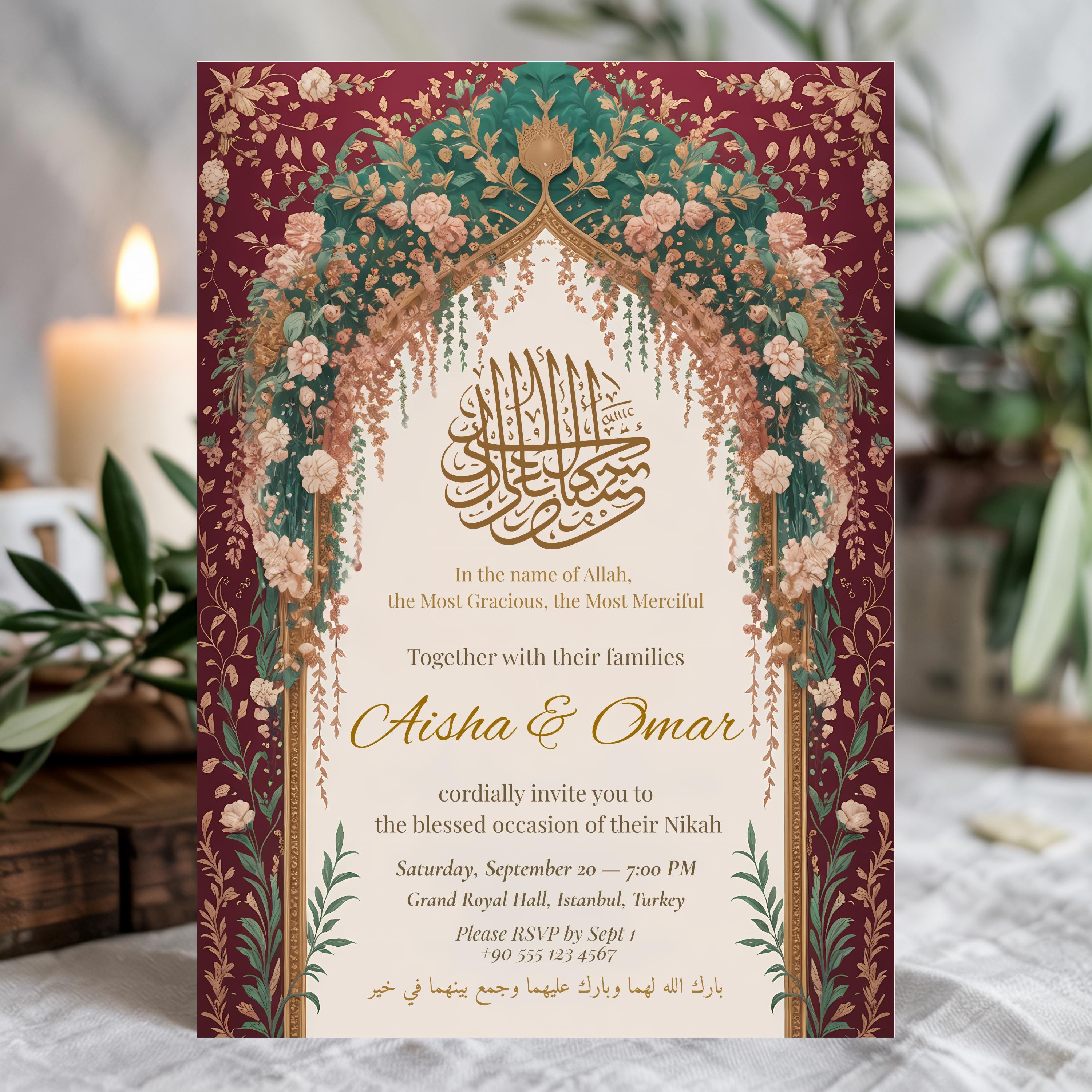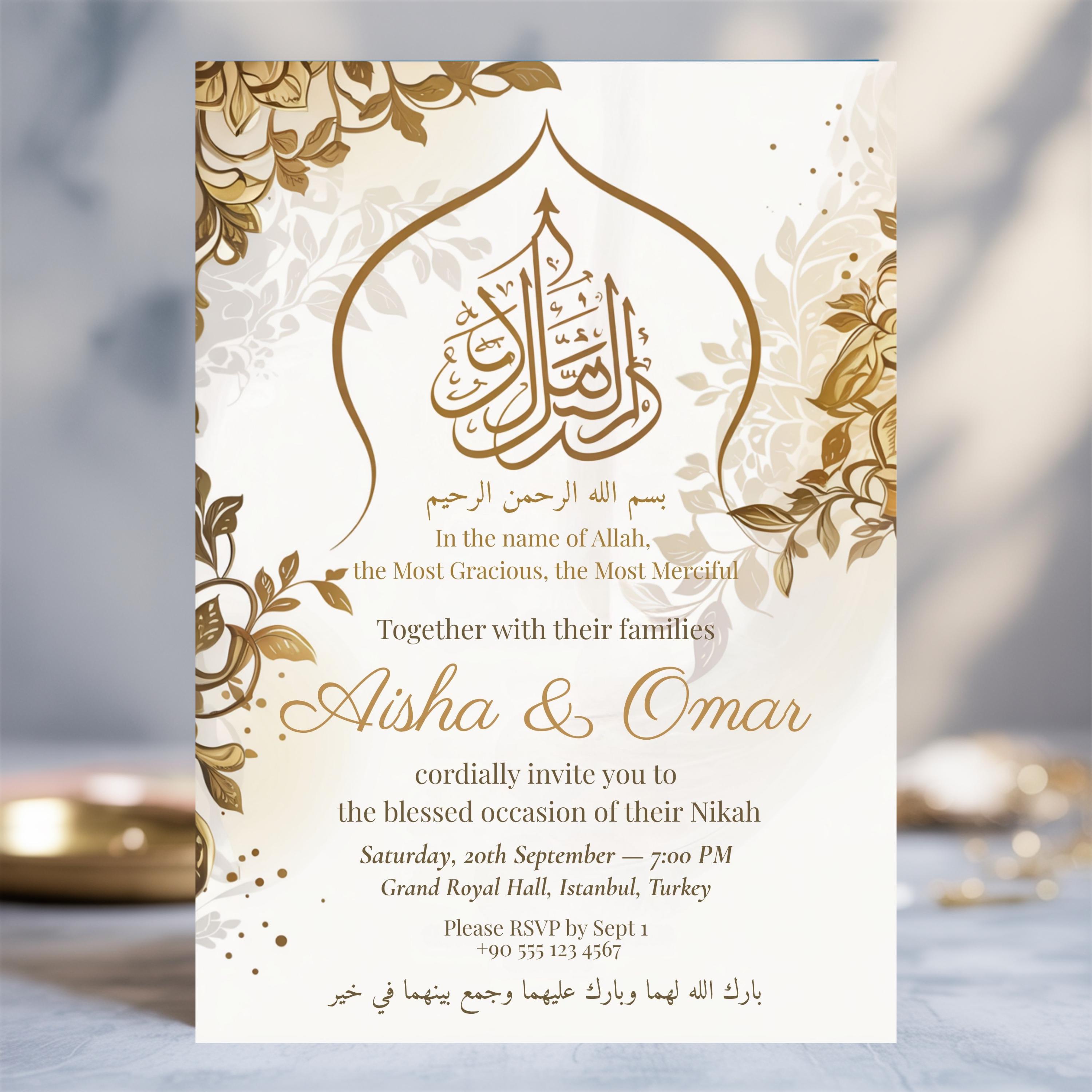 Elegant Islamic Wedding Invitation: Arabic Calligraphy, Nikah Card ...