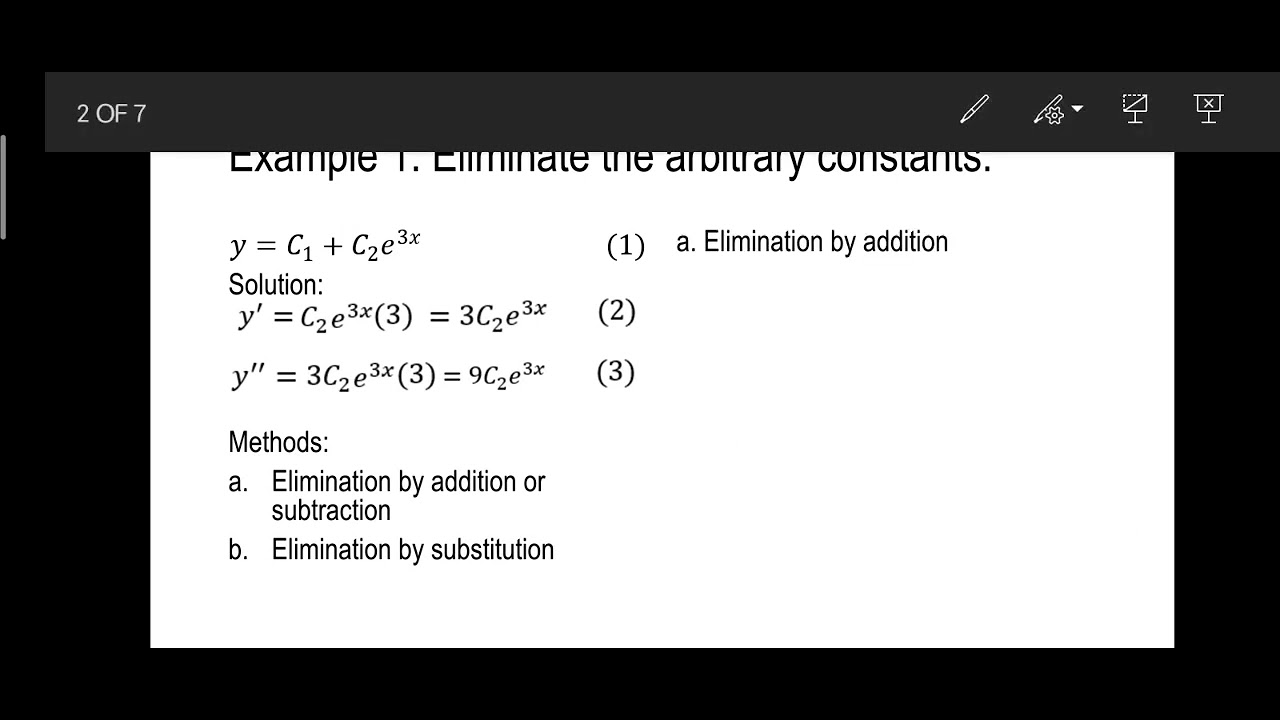 ELIMINATION OF ARBITRARY CONSTANTS || DIFFERENTIAL EQUATIONS - YouTube