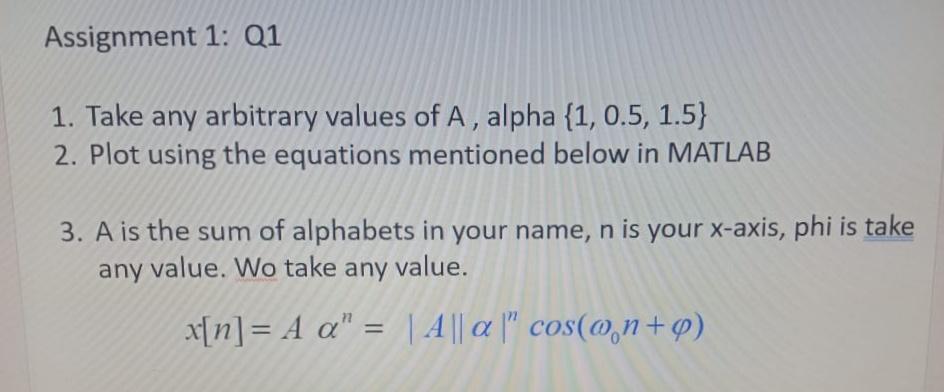 Solved Assignment 1: Q1 1. Take any arbitrary values of A, | Chegg.com