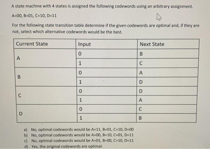 Solved A state machine with 4 states is assigned the | Chegg.com