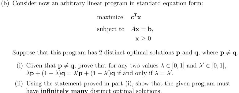 Solved (b) Consider now an arbitrary linear program in | Chegg.com
