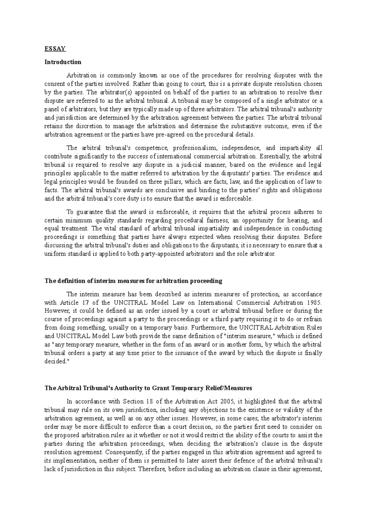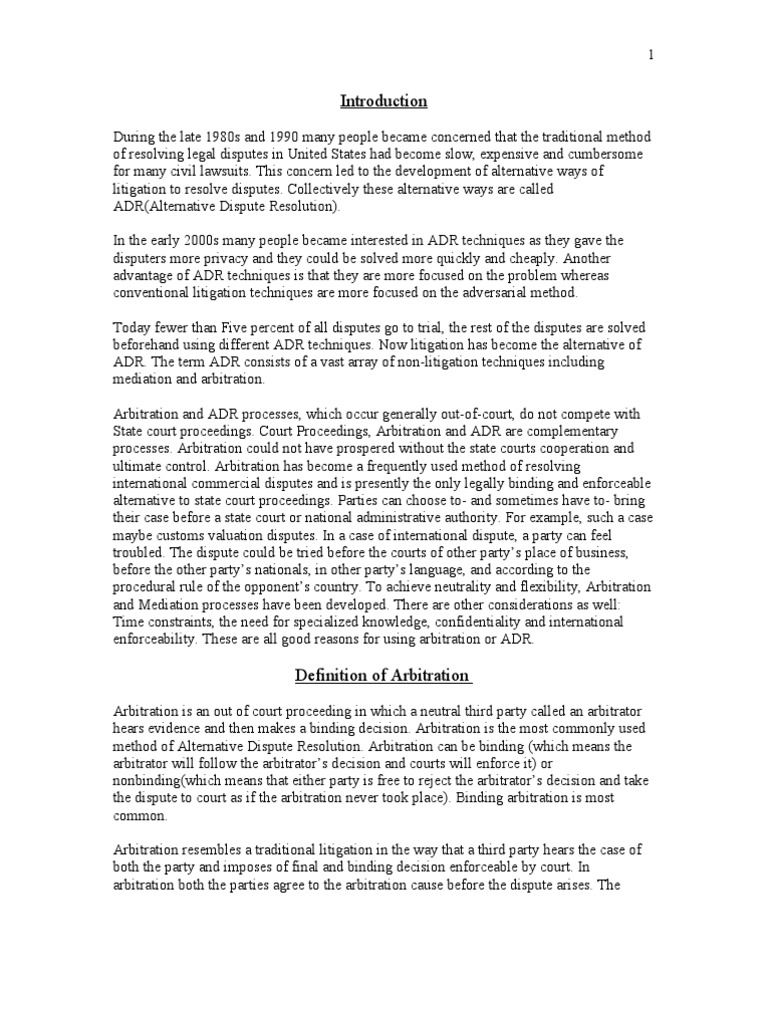 Writing sample ADR - assignment about arbitration - ESSAY Introduction ...