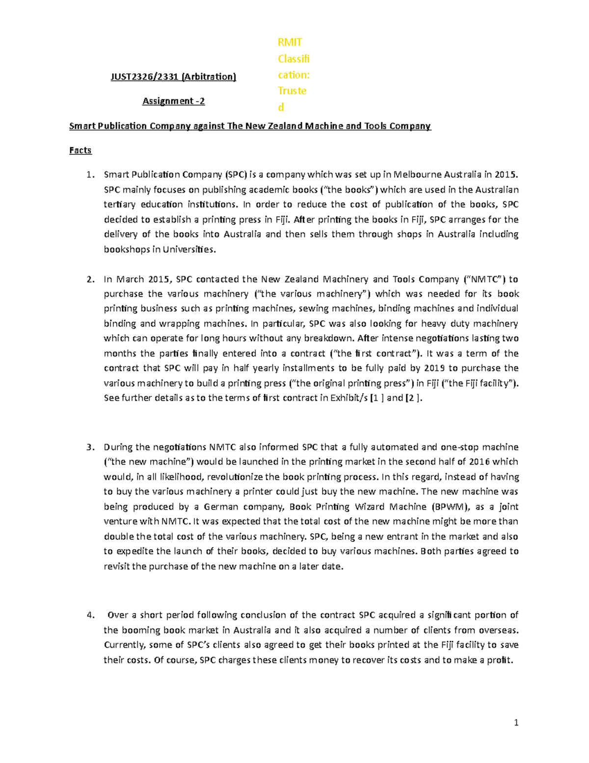 Arbitration RMIT Exam 2 - JUST2326/2331 (Arbitration) Assignment ...