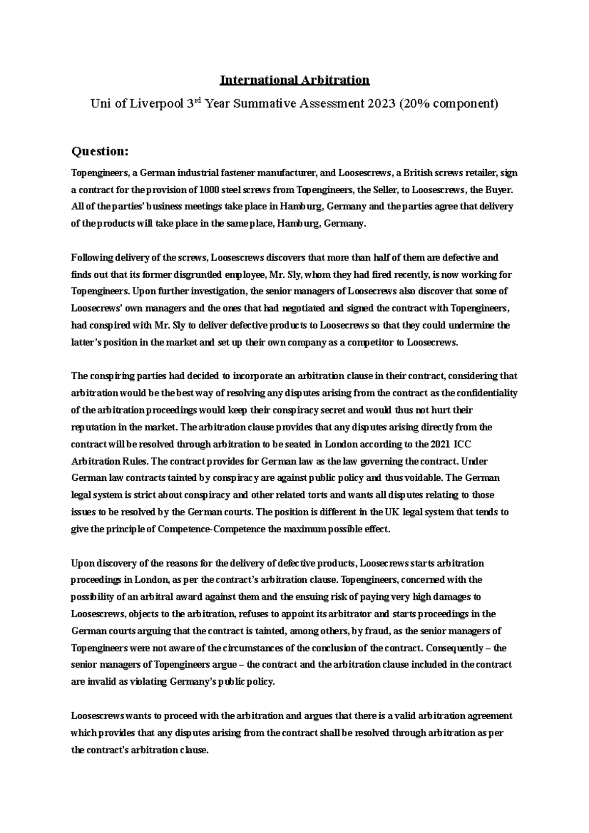 Arbitration assignment 2024 - ARBITRATION ASSIGNMENT DUE DATE: 5pm on ...
