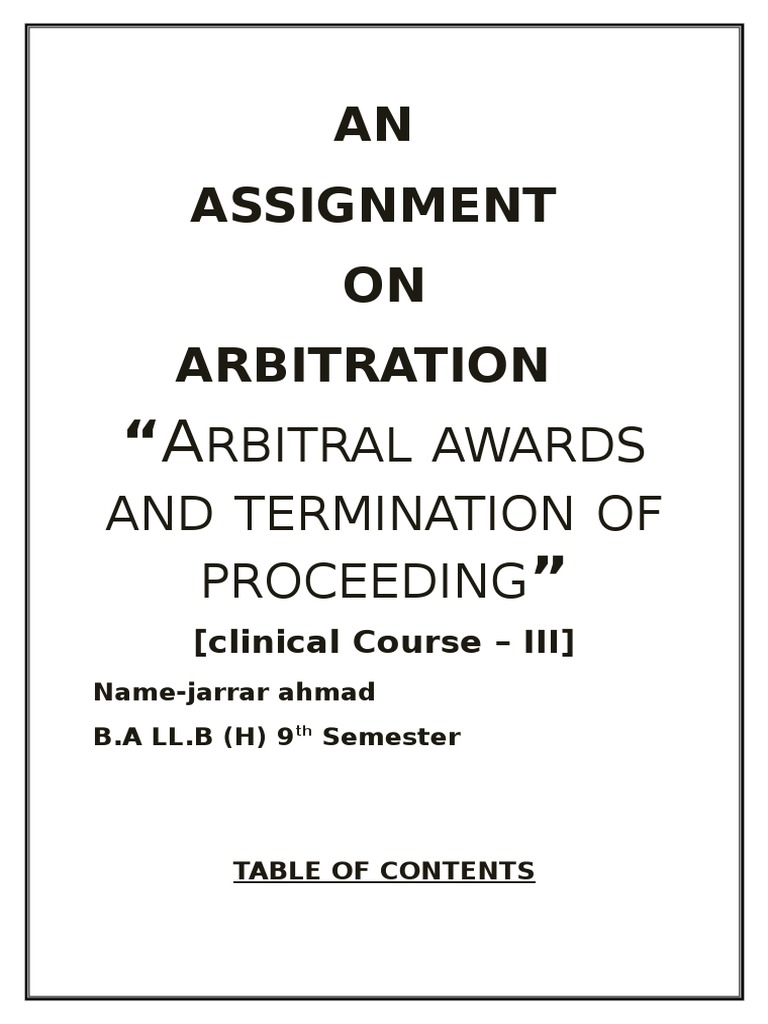 AN Assignment ON Arbitration: Rbitral Awards AND Termination OF ...