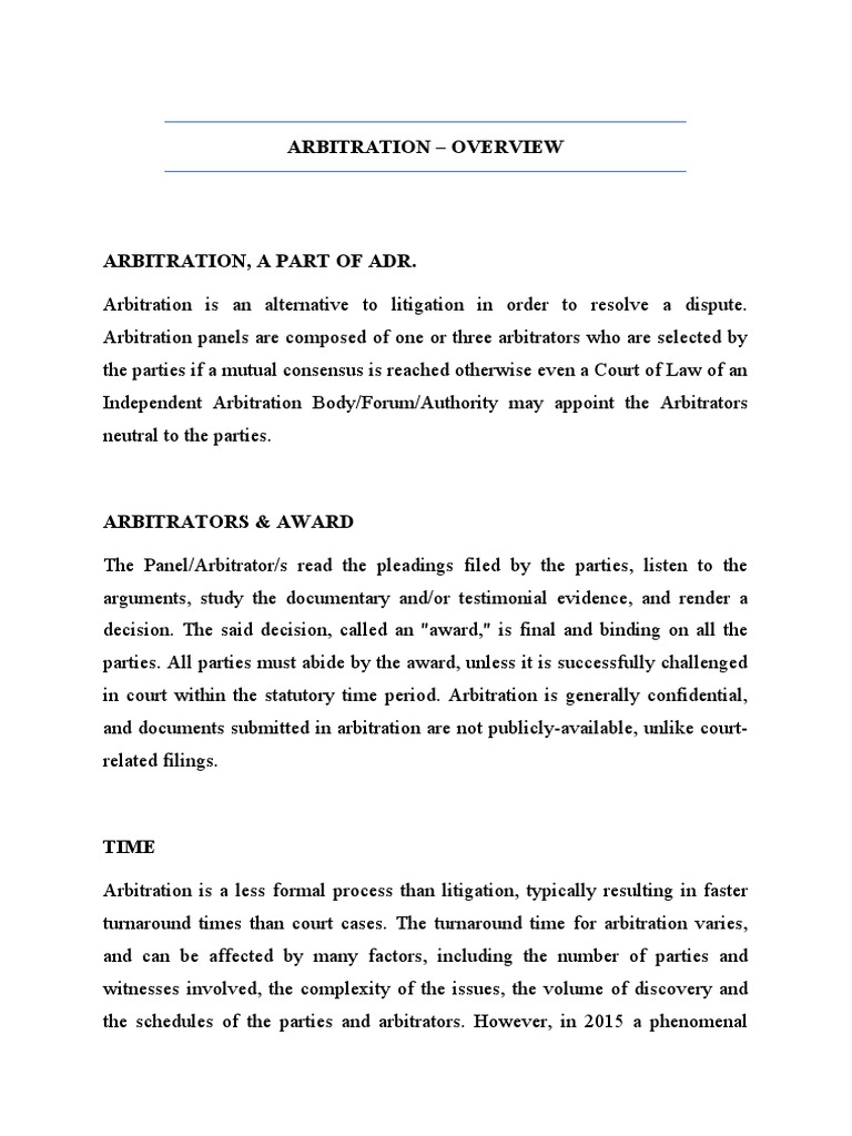 Arbitration Assignment .docx - Arbitration Assignment Arbitration is an ...