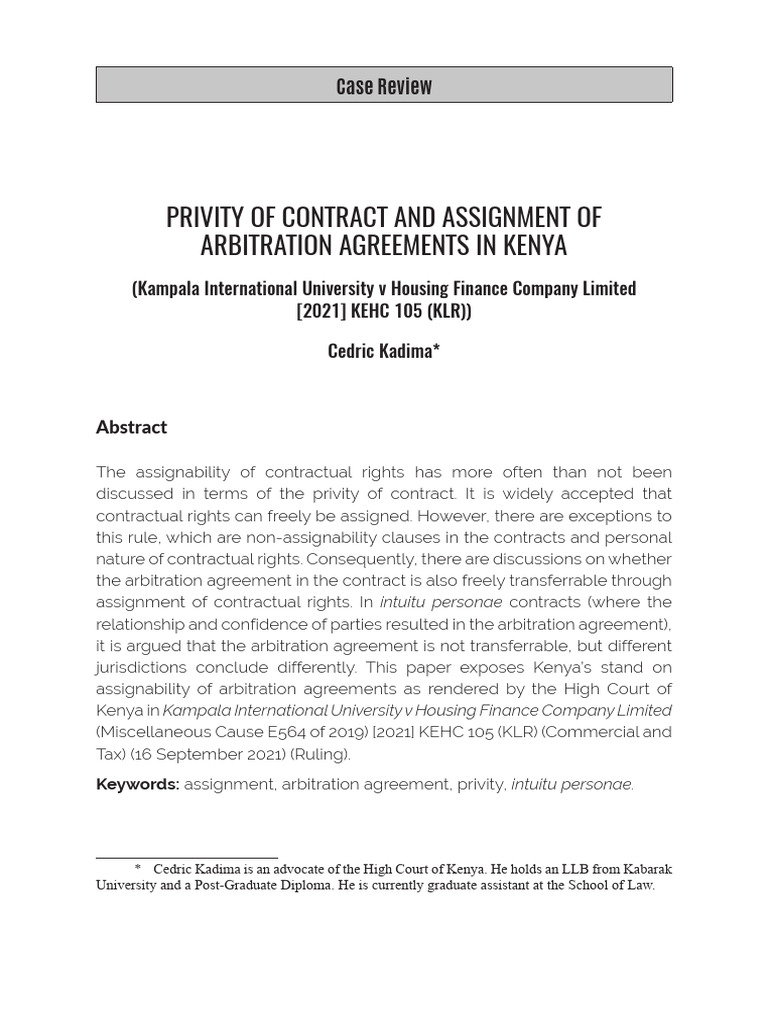 Arbitration Agreement Assignment in Kenya | PDF | Assignment (Law ...