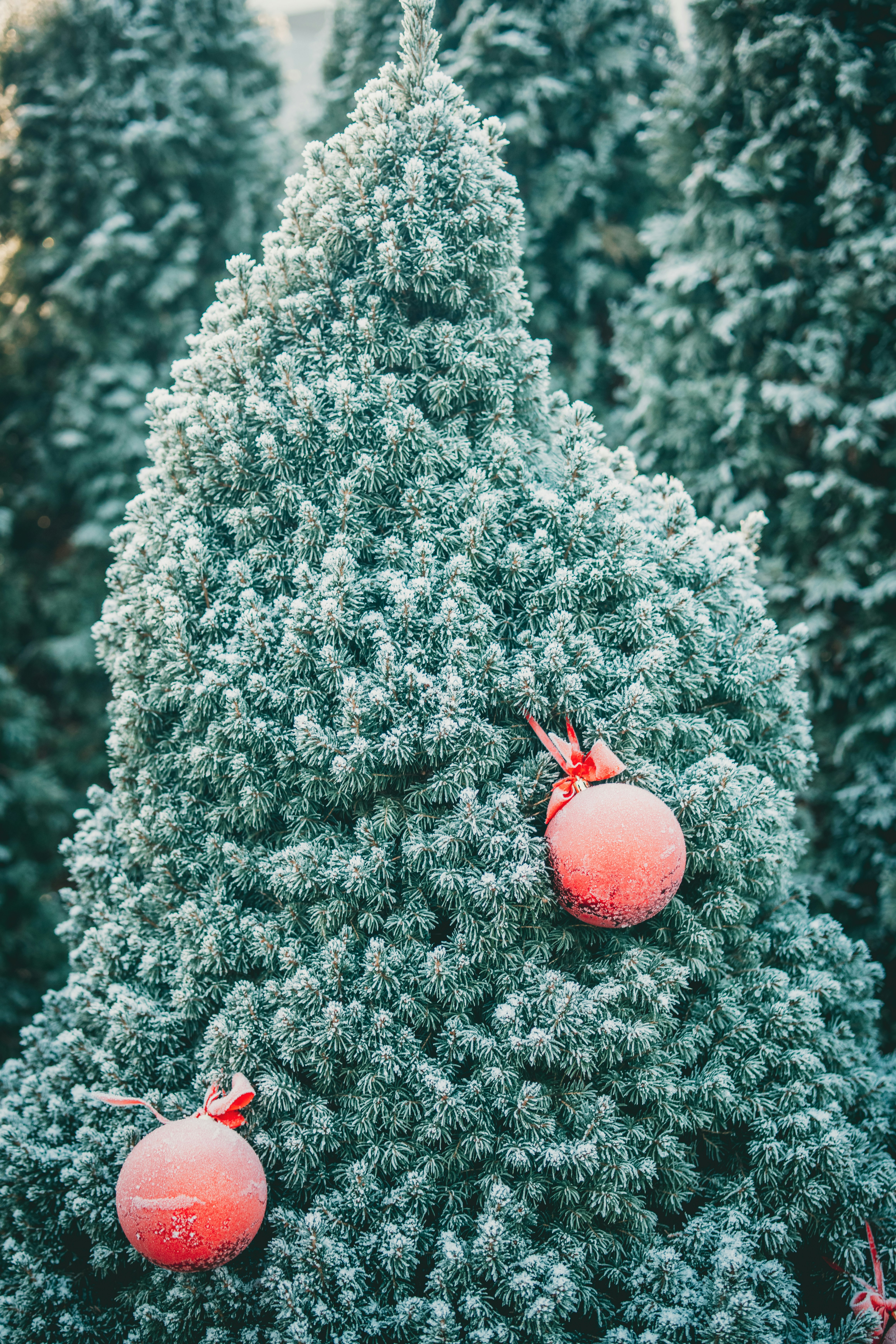 Arbre De Noël Dans La Nature Avec Des Boules Rouges | Photo Gratuite