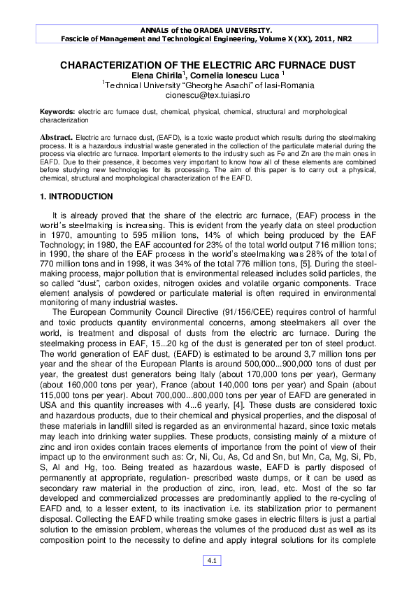 (PDF) Characterization of the Electric Arc Furnace Dust