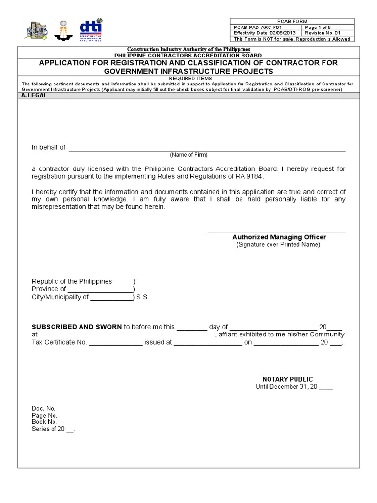 ARCC-Registratn and Classn For Govt Proj Application Form - 119192018-6 ...