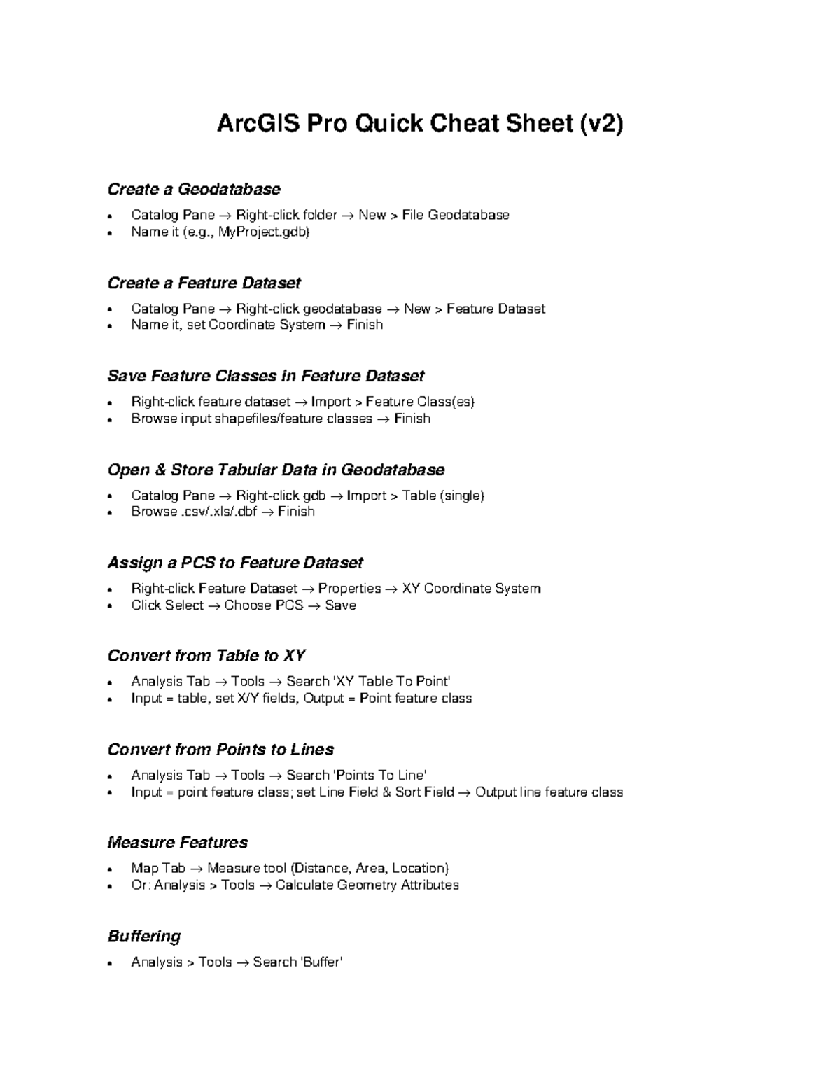 ArcGIS Pro Cheat Sheet v2: Geodatabase Creation & Management - Studocu