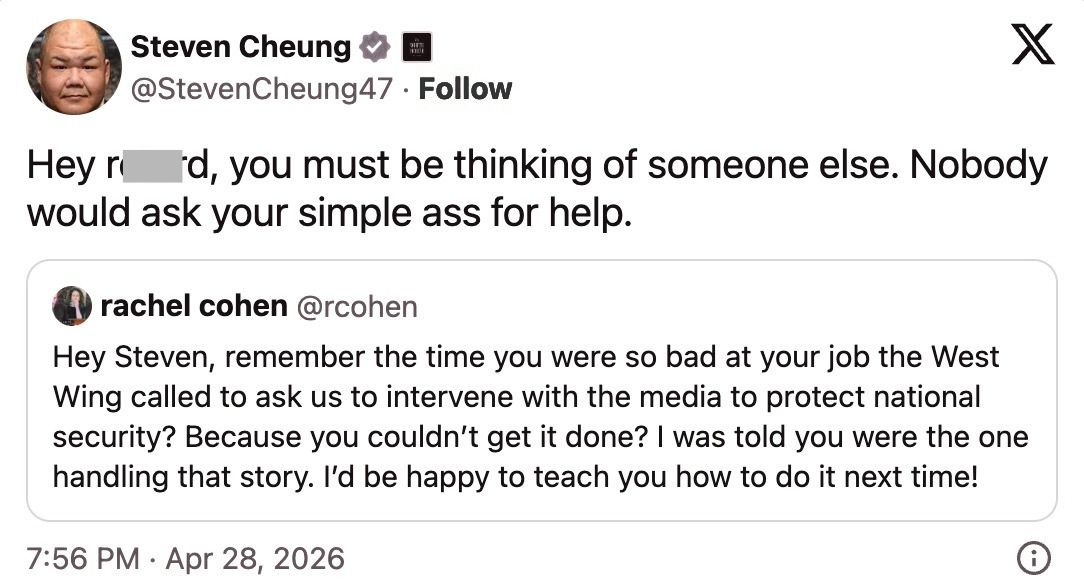 Trump comms chief Steven Cheung goes off on critic with R-word rant