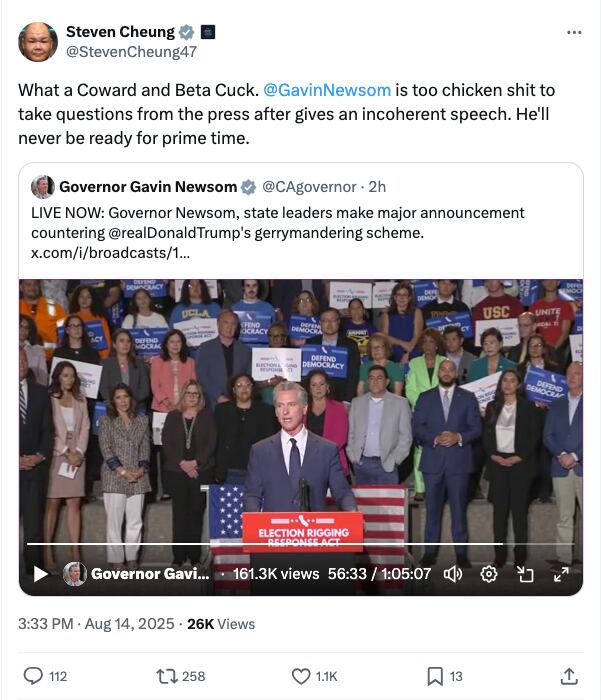 ‘Idiot’ Trump Aide Called Out for Failed Jab at Gavin Newsom
