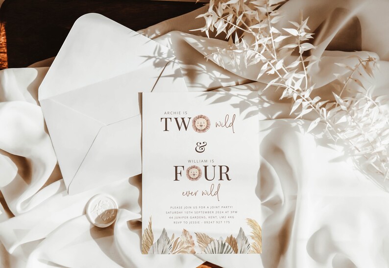 2nd and 4th Joint Birthday, Birthday Invitation Template, Two Wild ...