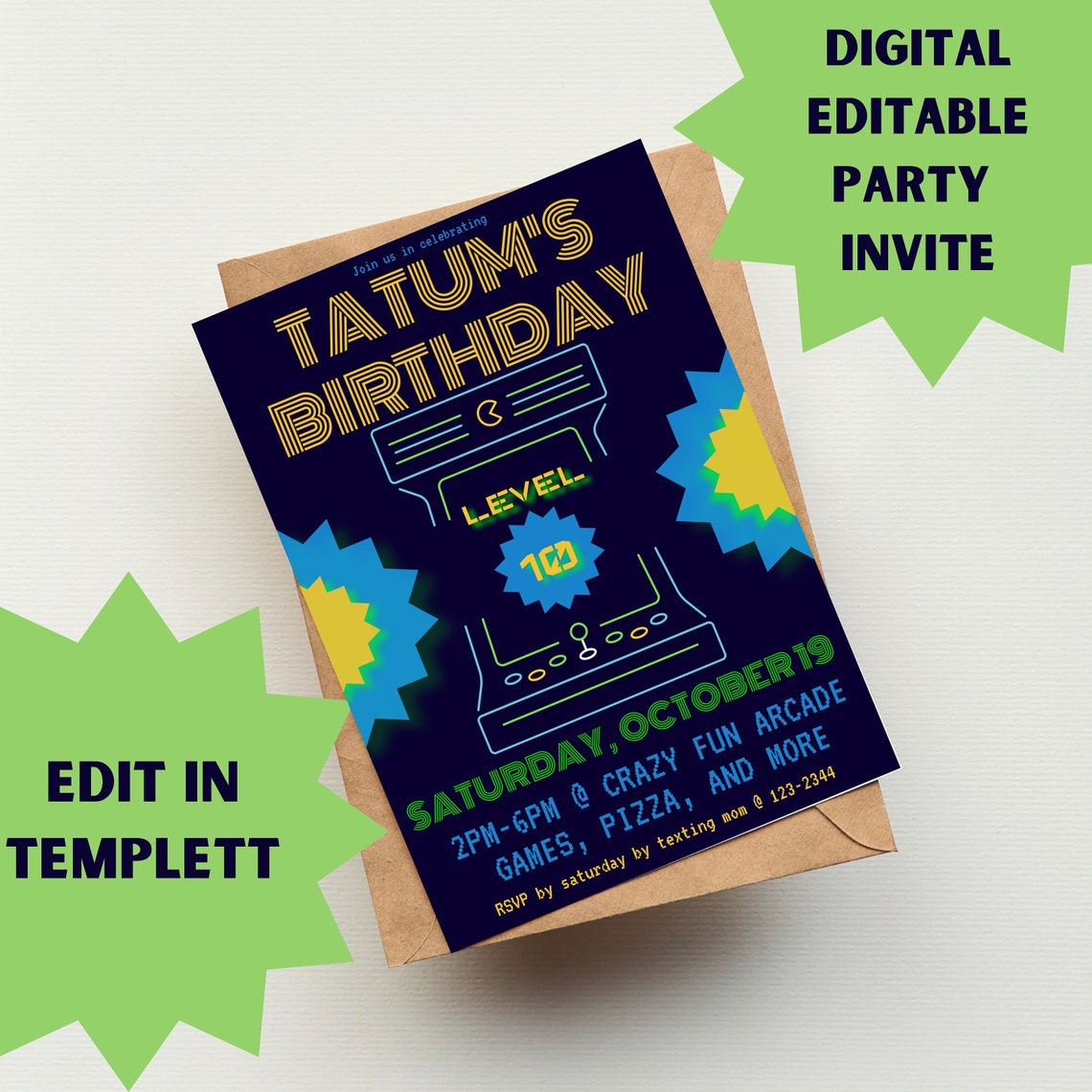 Arcade Birthday Party Invite Kids Arcade Party Invitation Editable ...