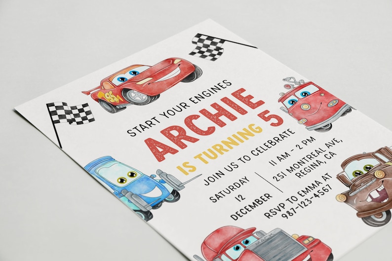 Editable Cars Birthday Party Invitation Cars Lightning Birthday Invite ...