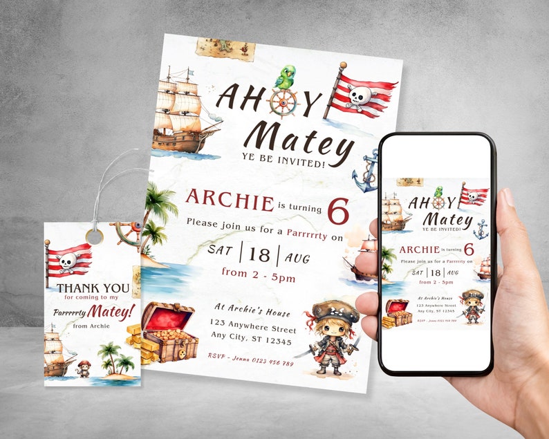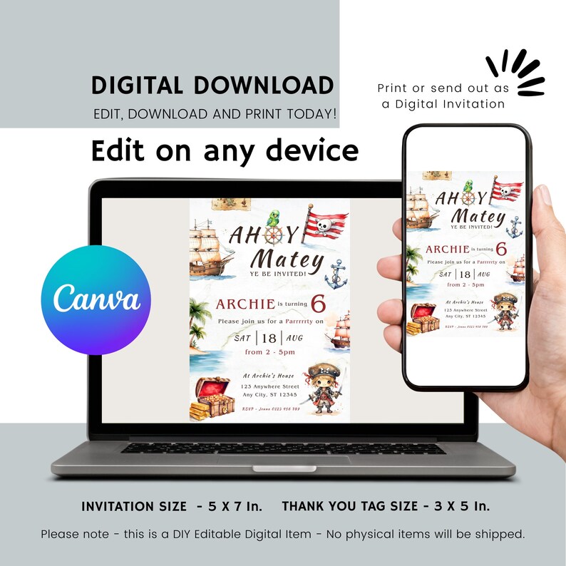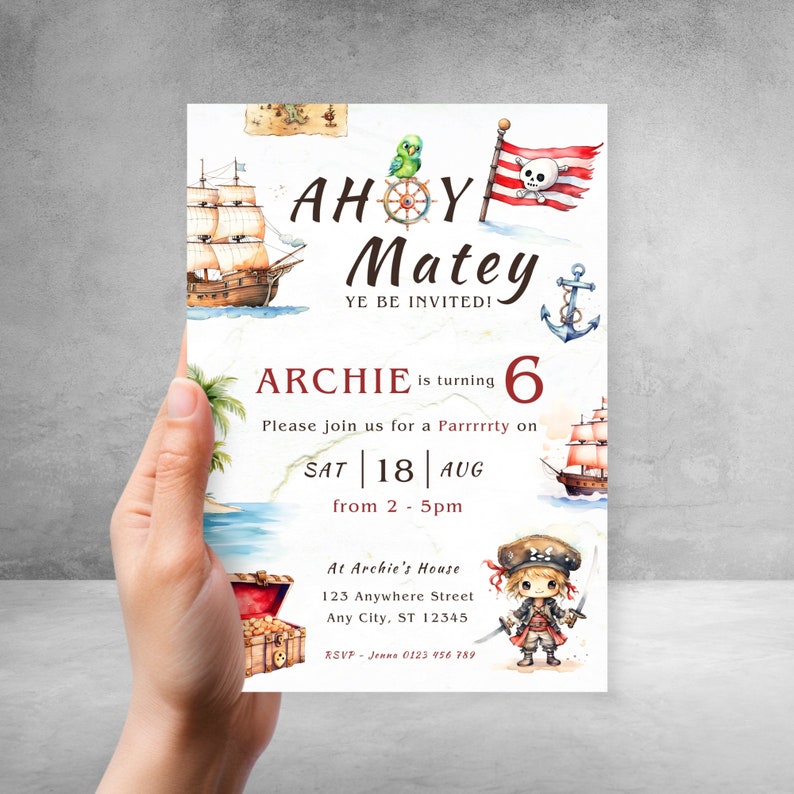 Pirate Party Invitation, Editable Pirate Invite, Pirate Kid Themed ...