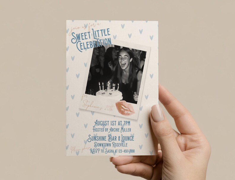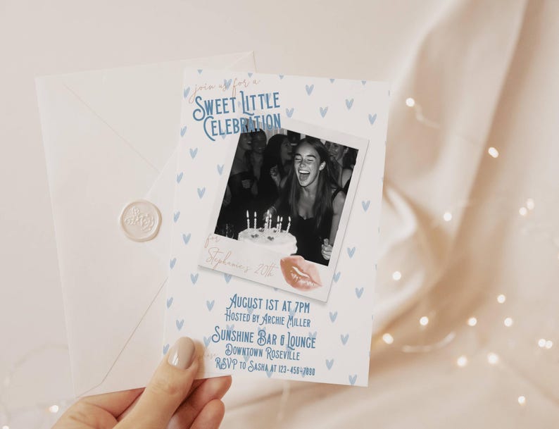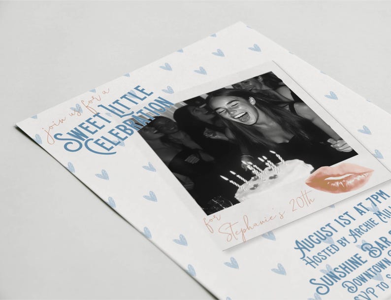 Editable Birthday Party Invitation: Blue Hearts, Photo Template ...