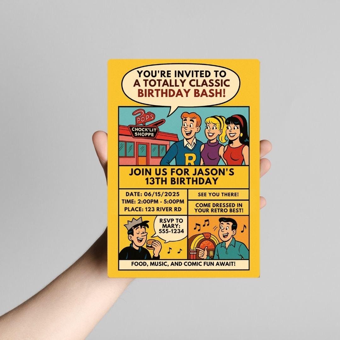 Retro Archie Comics Birthday Invitation – 1950s Comic Book Party Invite ...