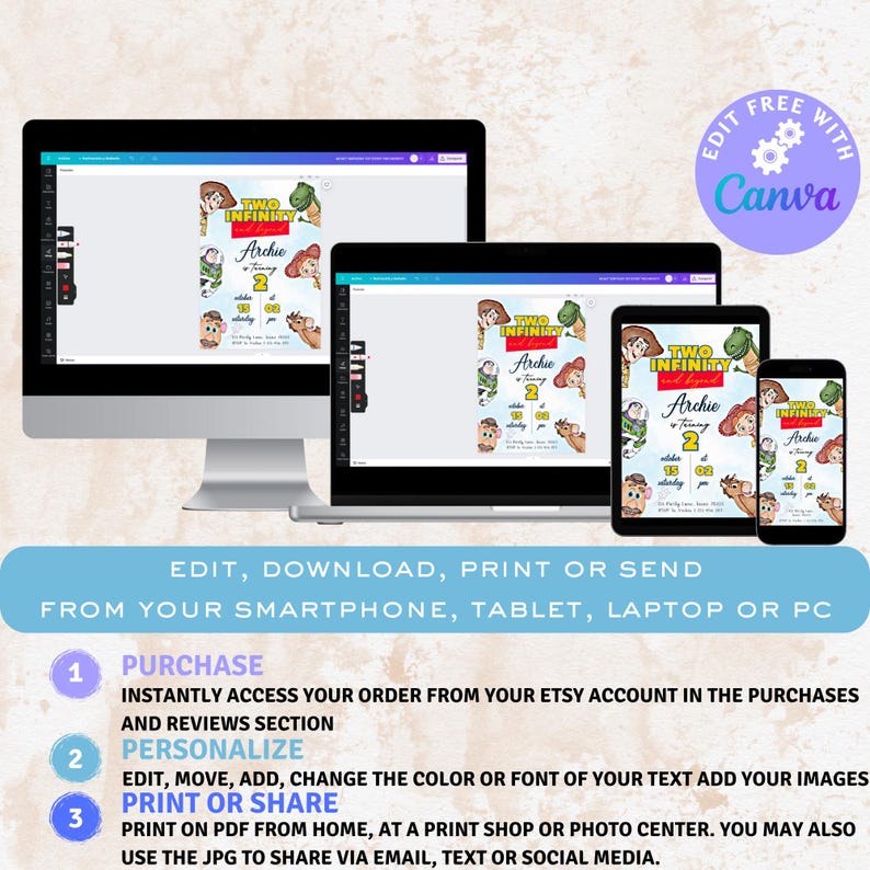 Editable Two Infinity and Beyond Digital Invitation - Etsy