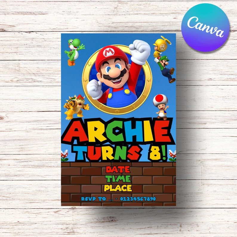 6x4" Super Mario Birthday Invitation | Digital Editable Download - Etsy