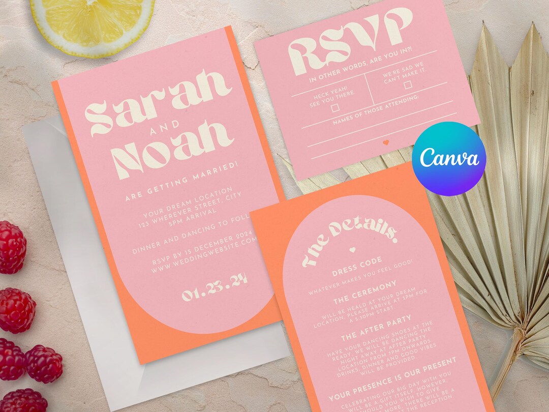 WEDDING INVITE SET | Archie Suite | Canva Editable Template | Colourful ...