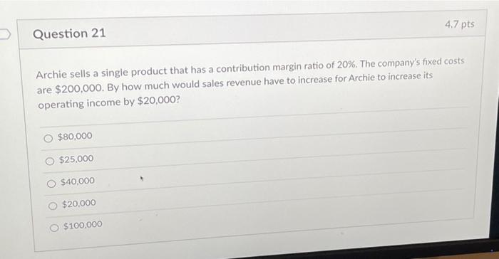 Solved 4.7 pts Question 21 Archie sells a single product | Chegg.com
